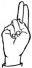 На ћирилици написано ТОМИСЛАВ ТРИКОШАНИН састоји се из 18 слова [?]. Исписано ћириличном једноручном азбуком за глувонеме: